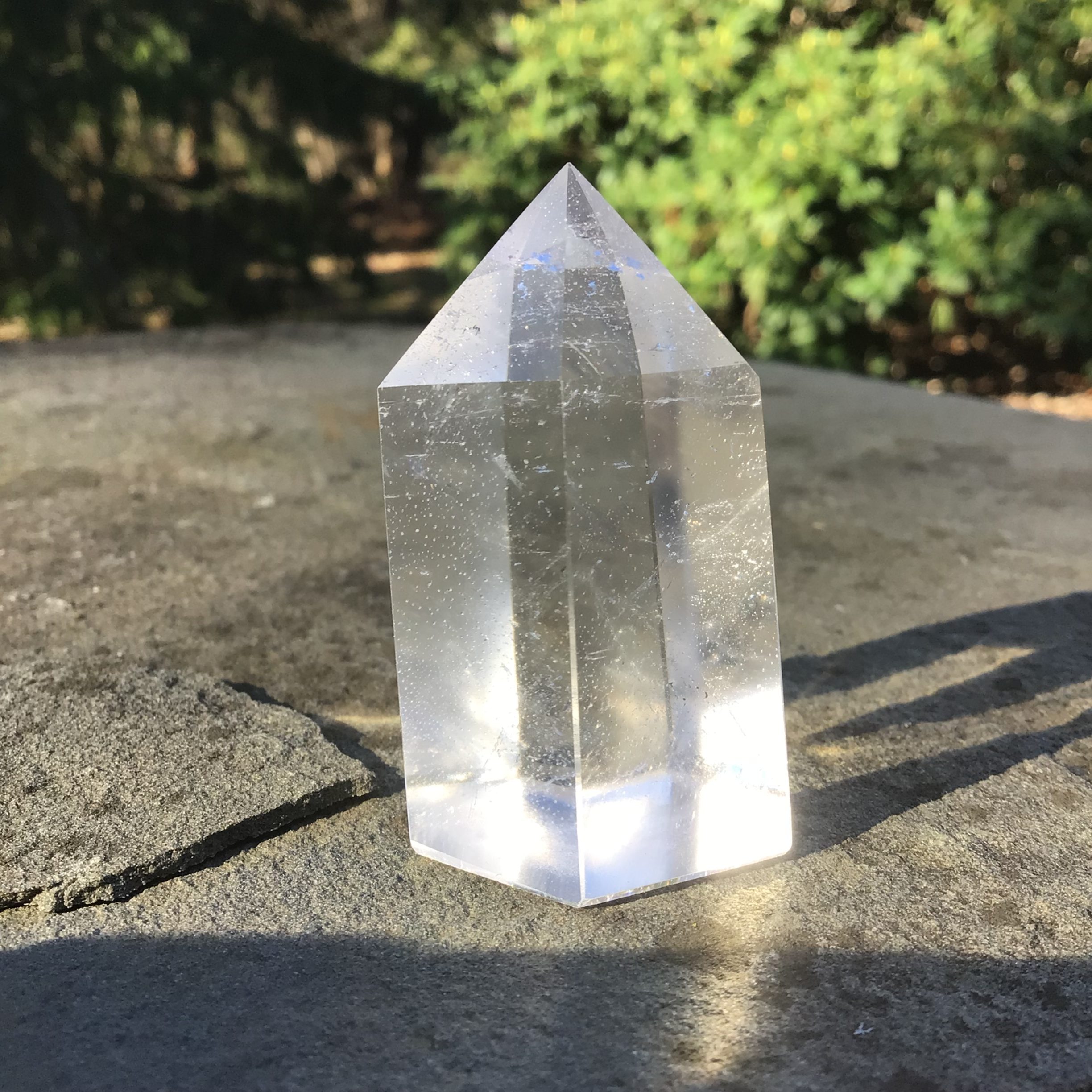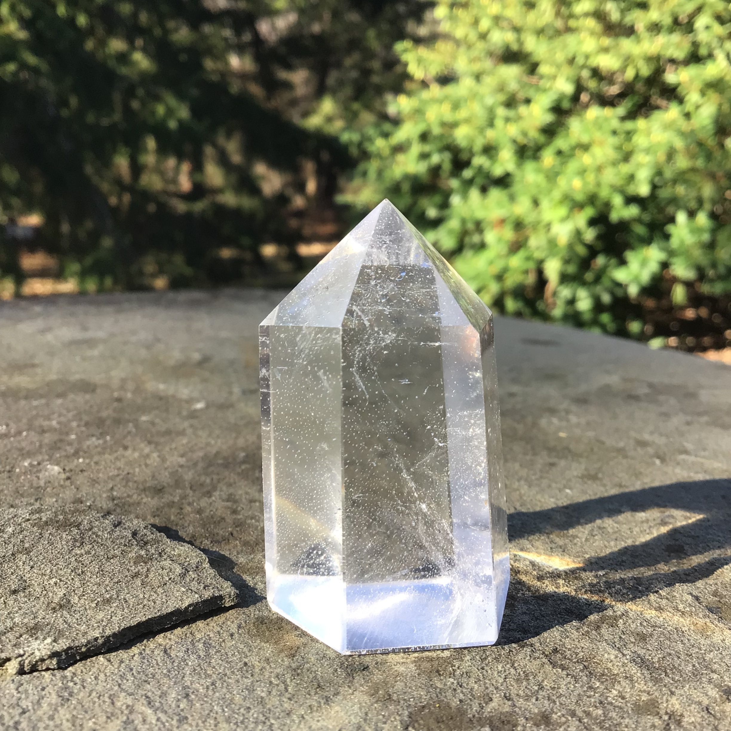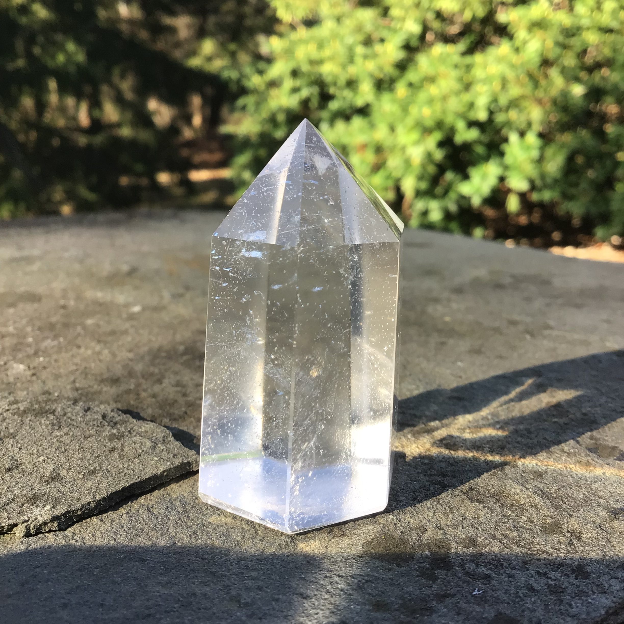 This tower is full of beautiful inclusions. Tower is 1 3/4 inches high, 1 1/4 inches wide at the base and weighs 72 grams or 10 2.5 oz. Clear Quartz absorbs negative energy from around you, remember to cleanse.